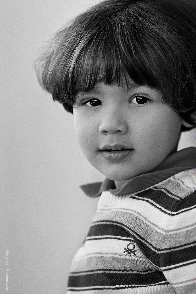 Occhi che bucano lo schermo, una bocca carnosa e ben disegnata, dalla quale si intravedono due dentini, rendono questo bimbo un modello adatto ai ritratti.