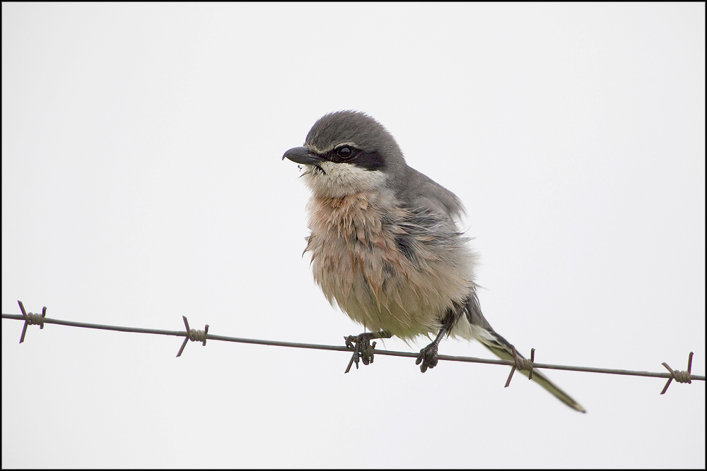 Nonostante la situazione meteo ne hai tratto una bellissima immagine, mi piace il contrasto della soffice piuma con l'irto reticolato.