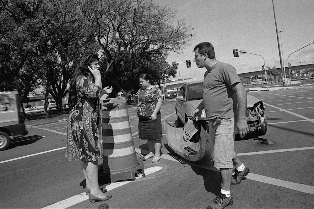 Basta guardare l'energumeno abbastanza arrabbiato per il paraurti divelto e le due donne entrambe al telefono.