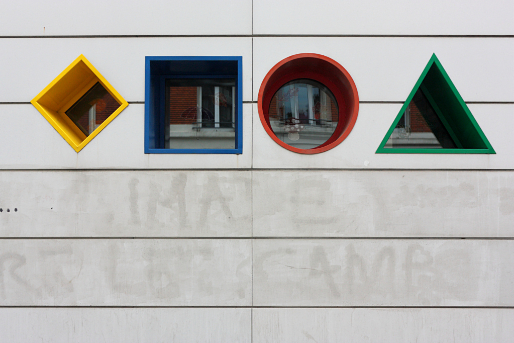 ricorda l'infanzia, con i giochi colorati ad incastro in fondo ai quali si percepisce un'idea di futuro.