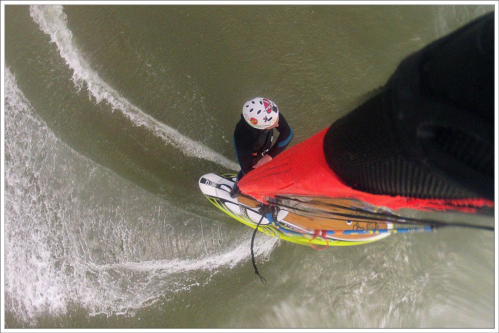 Rivedendo un po' la composizione con un piccolo ritaglio (la parte in alto a dx sfuocata e' da ridurre) l'immagine aumenta un po' di forza, ancor maggiore se il volto del surfer fosse stato visibile. IMO