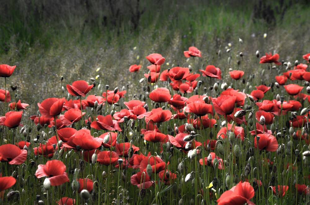 Mi piace la luce che si posa sui papaveri, li rende vellutati, per i miei gusti i toni sono un po' freddi.