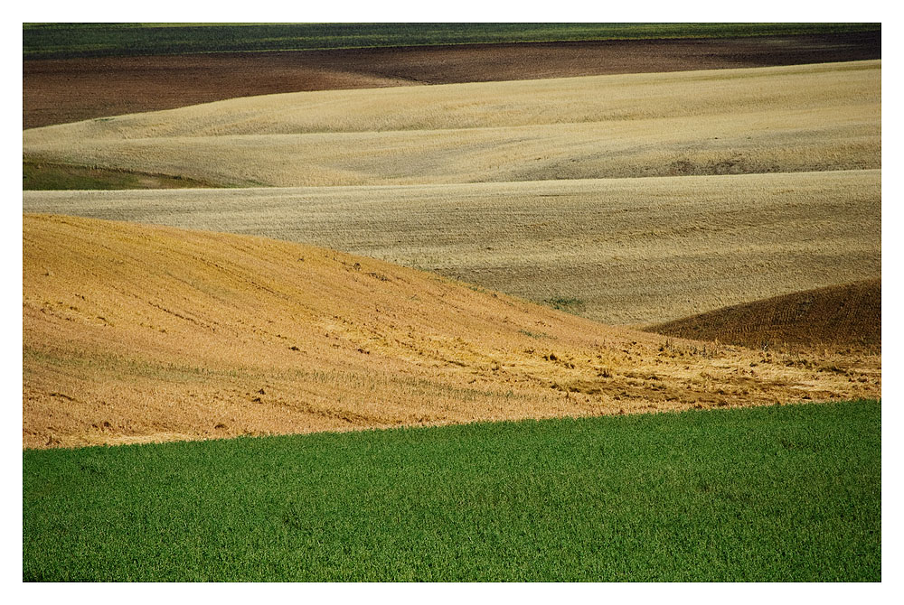 Gradevole paesaggio che gioca la sua forza tra linee curve e colori pastello.