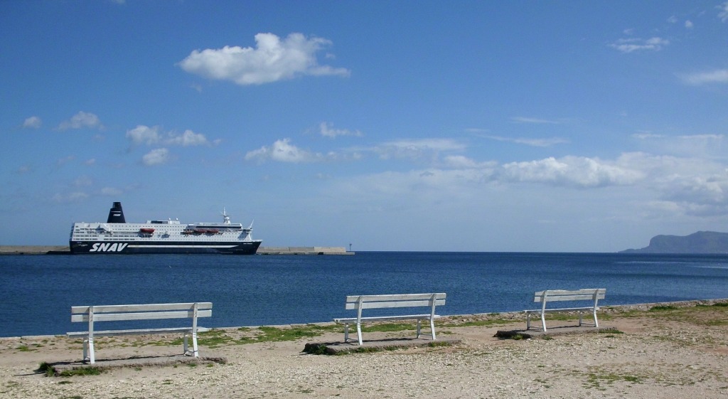 Questa, a mio parere, è già meglio. L'inquadratura funziona meglio. Le tre panchine sono ben disposte e bilanciano molto bene l'equilibrio compositivo.