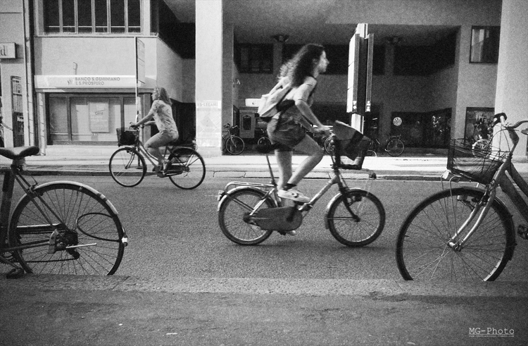 Bici da tutte le parte, buona foto con movimento ben ripreso. Come già detto " la grana".  _________________ Uomo libero sempre ti sarà diletto il mare. Baudelaire |
