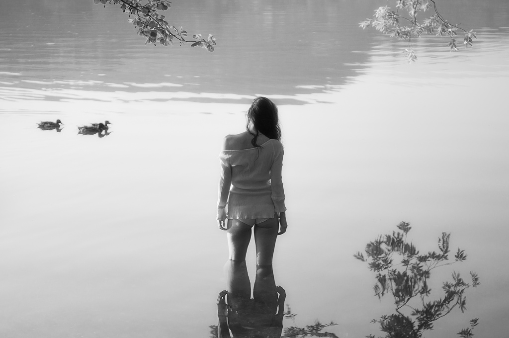 In realtà proprio le tanto attese anatre a me sembrano dopotutto elemento incongruente sulla scena. Ne mutano il significato indebolendo il senso intimista dello scatto. Mi sarebbe parso più efficace studiare una diversa inquadratura che, spostando a sinistra la posizione del soggetto, riequilibrasse diversamente gli elementi presenti.