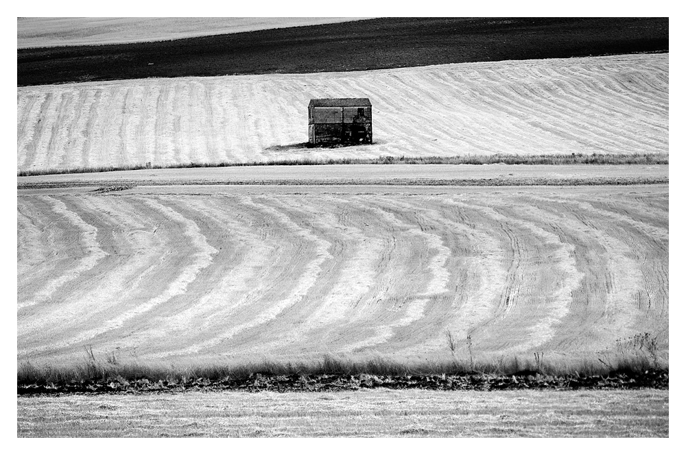 La casetta andrebbe decentrata per dare "respiro" e fuga all'occhio..e la collina andrebbe inclusa o tagliata, la curva andrebbe assecondata nella sua sinuosità crescente per poter accompagnare l'occhio sul fotogramma.