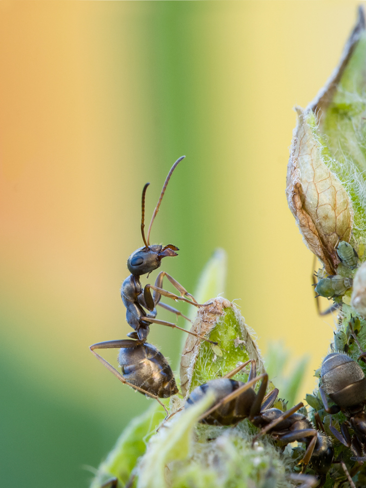 Bello scatto, ma per gusto personale avrei preferito la sola formica di vedetta senza le compagne che tra l'altro in quelle posizioni generano confusione.