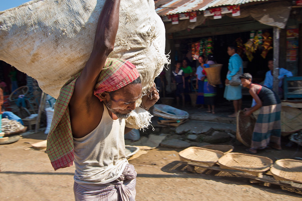 Mi piace la figura del trasportatore ripreso nel suo sforzo, fose sento la mancanza della mano in alto.