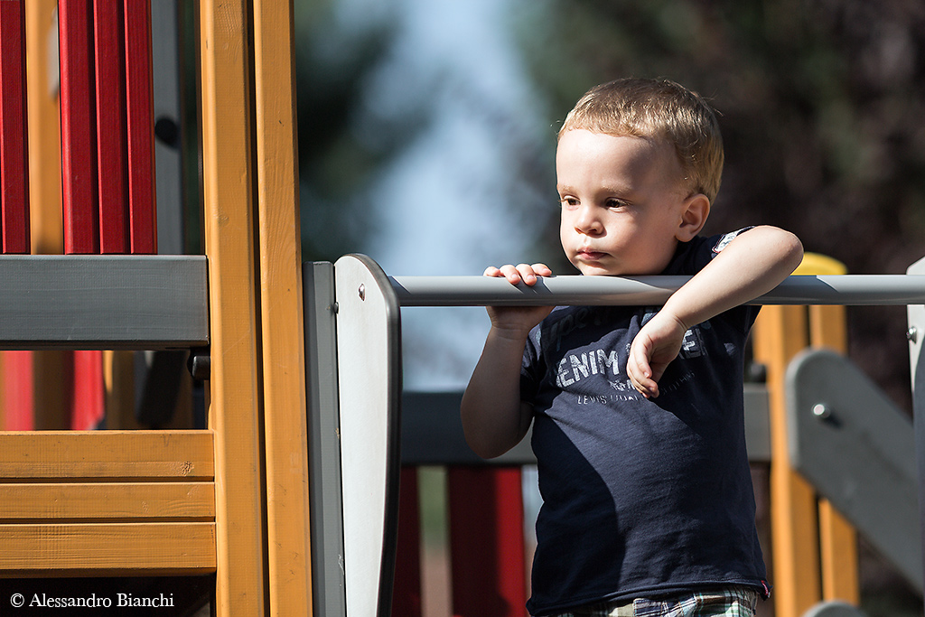 @Mauroq: adesso che me lo fai notare, effettivamente quella parte di struttura sulla quale è appoggiato da fastidio, è sfuocata perchè ero a f/2 con il 135mm, non saprei se clonarla o croppare la foto in quel punto, ma perderei la "regola dei terzi" e taglierei il gomito. Avrei dovuto pensarci in fase di scatto, ma le foto che faccio a mio figlio non sono studiate, si muove troppo veloce e a volte è già tanto che mi entra tutto nell'inquadratura.