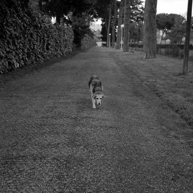 Nonostante le foto con i cani che passeggiano mi ispirino comunque simpatia Wink, in questo caso la composizione non é convincente. Troppo spazio vuoto nella parte bassa (tra l'altro proprio dove cade il piano di messa a fuoco) e lo sfondo finisce per attirare l'occhio, dopo essere passato sul cane.