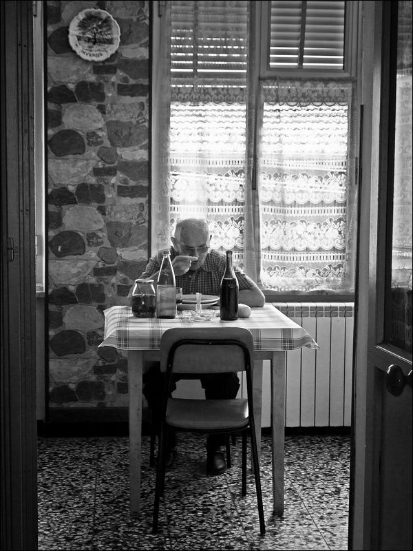 In quella osteria ci vado una volta l'anno, mentre il signore direi che è praticamente residente. Tutto sa di antico lì, anche le vecchie maniere di essere.