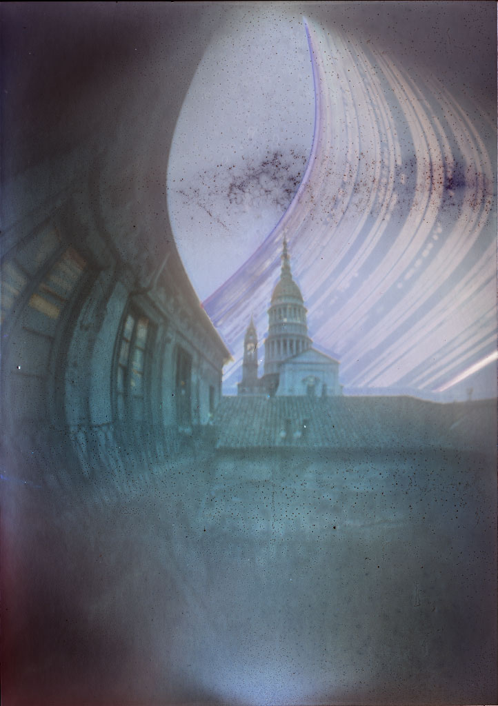 Ho voluto pensare ad un progetto che mostrasse lo scorrere del tempo e che immortalasse quest'anno così particolare. E' così iniziato un "lavoro di gruppo", una iniziativa collettiva che ritraesse diversi punti di vista su un periodo di 12 mesi: abbiamo preparato delle fotocamere stenopeiche, che sono state distribuite a tanti amici e posizionate dove ciascuno preferiva. Trascorso l'anno, le ho raccolte, ho scansionato i negativi e sviluppato le immagini. Uno sguardo lungo un anno, appunto.