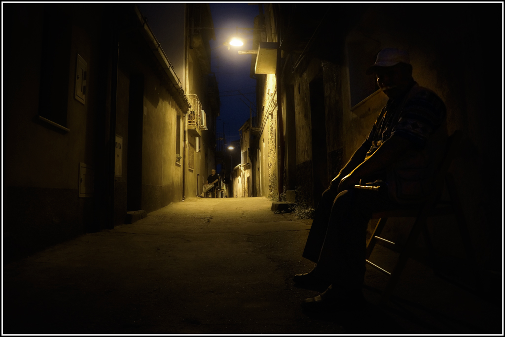 Andrebbe recuperato qualche dettaglio sul viso dell'uomo in primo piano, mentre il secondo e' troppo lontano (non si capisce cosa stia facendo). Bella l'atmosfera.