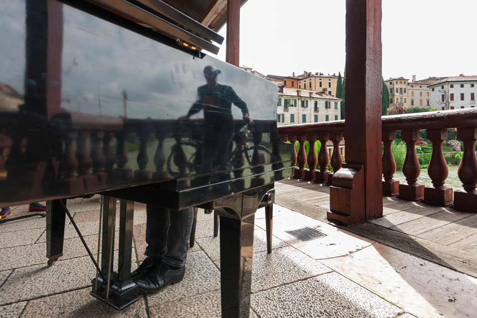 Per il riflesso ti confesso che non l'ho considerato. Era uno scatto nato per un concorso in cui ci fosse la bicicletta e Bassano del Grappa e quindi ho dovuto mantenere visibile la balaustra del ponte e parte della sponda.