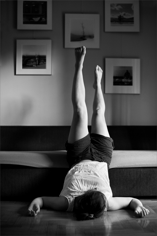 che equilibrio, sembra con il piede sinistro sospenda il quadro con la foto.