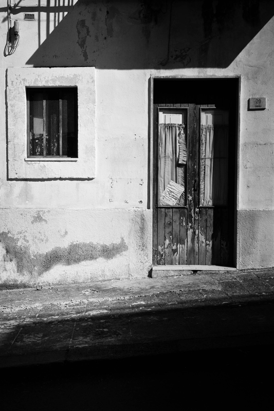 Foto grafiche e geometriche devono esserlo veramente. Oppure discostarsene veramente così da non insinuare il sospetto che si sia cercato un rigore che invece non si è realizzato. Qui le linee verticali di porta e finestra denunciano l'inclinazione verso il basso dell'asse ottico. Andavano secondo me corrette.