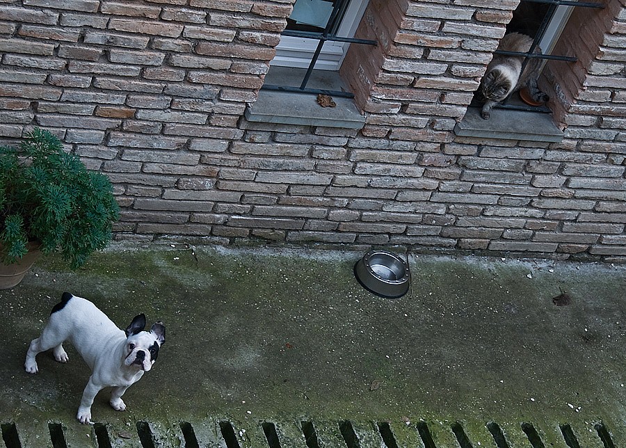 Bella. Il cane si prende tutta la scena, al gatto si arriva dopo, ed è una bella sorpresa. Bravo.