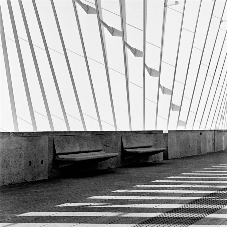 Bel rimando di linee ed ombre. Molto gradevole la composizione, avrei solo evitato di fare partire il piede del fotogramma con il segmento chiaro.
