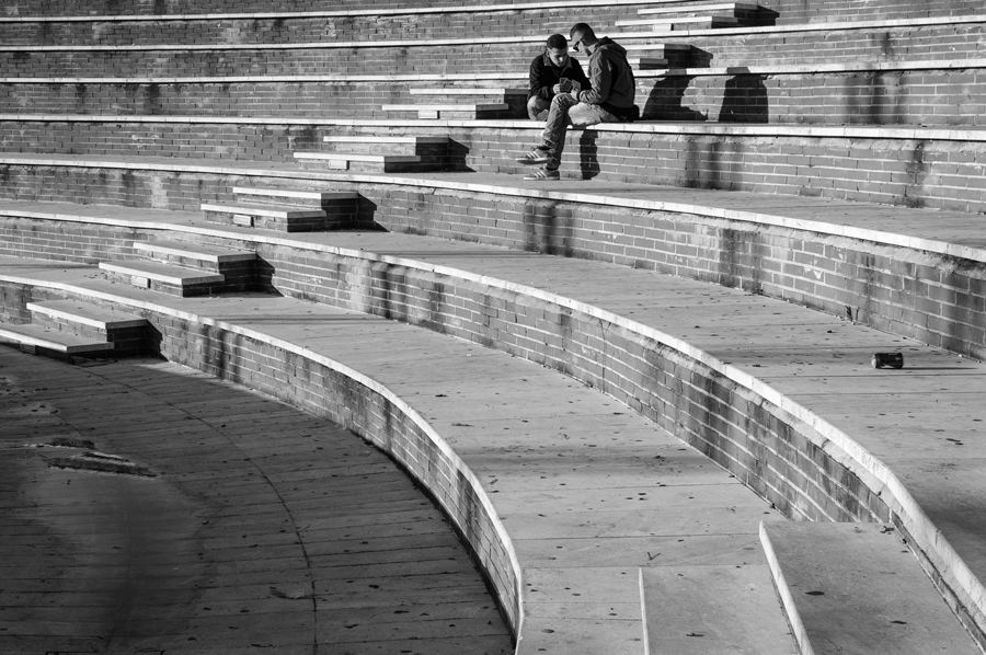 Bella la serialità delle linee che però penalizza i due ragazzi relegati al margine della foto, che avrebbero meritato più spazio e maggiore leggibilità.