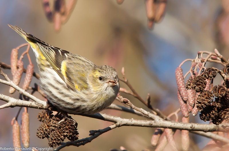 Bellissima femmina di Lucherino eurasiatico (Carduelis spinus), bella l'ambientazione e ottimo il pdr, Ciao