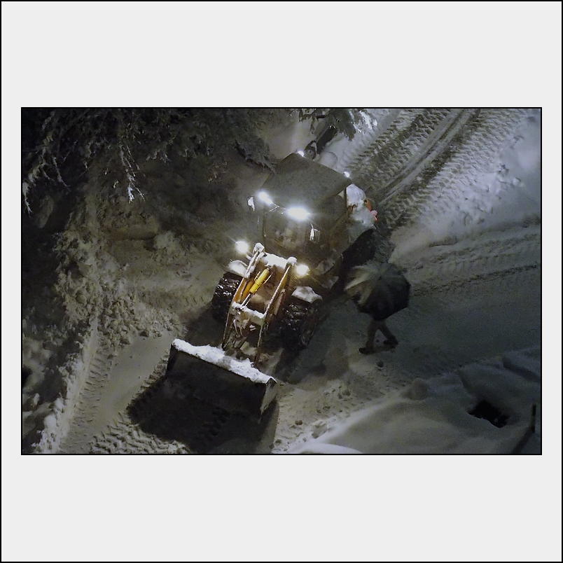 Ti dirò anzi che quando cadono i primi fiocchi di neve mi piace fotografare dall'alto i primi segni lasciati sul candido manto, orme o tracce di pneumatici.