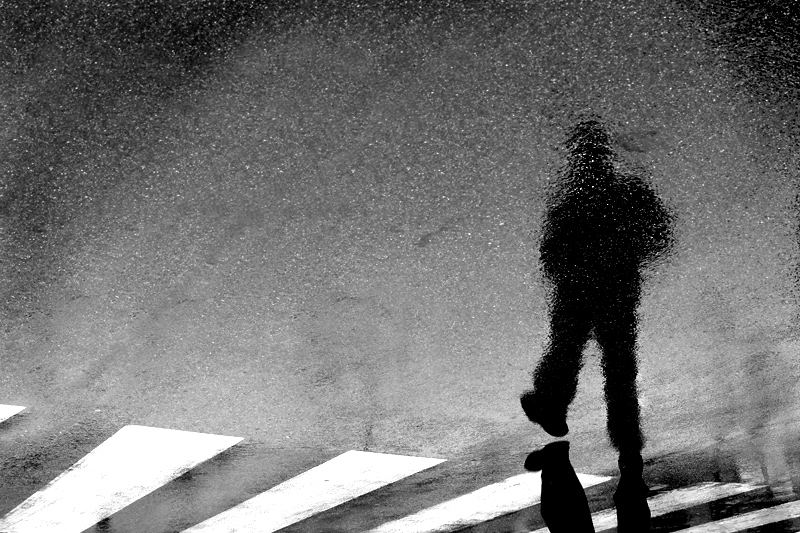 Il fondo stradale bagnato ti ha regalato una bellissima tavolozza che hai sfruttato bene.