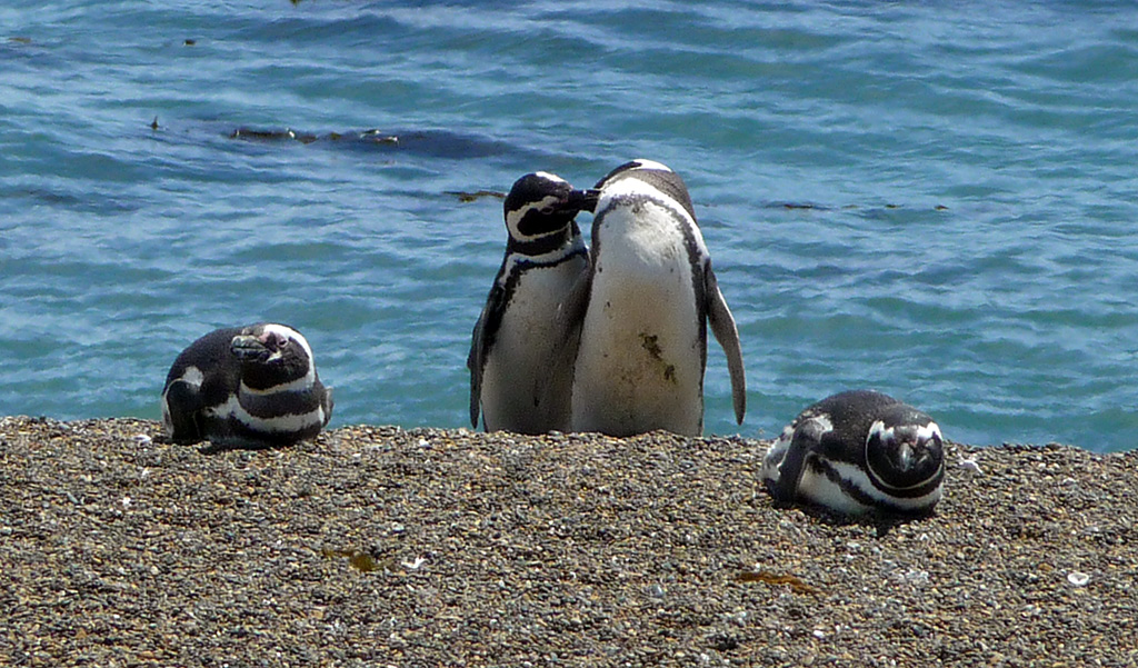 I due pinguini vicini sembrano fare da contorno ignorando la coppia per non sembrare dei guardoni... .