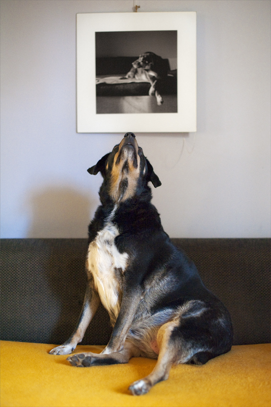 L'idea è molto buona in quanto sembra che il cane guardi il proprio ritratto ma forse devi fare altri tentativi che ti soddisfino.