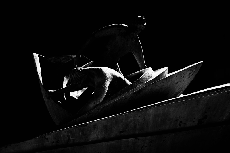 Parlando di questa: mentre fai la scelta di un b/n di matrice fortemente grafica, sembra che nella composizione questa intenzione venga contraddetta da un taglio a destra che soffoca lo sviluppo dinamico. L'insieme ne esce appesantito.