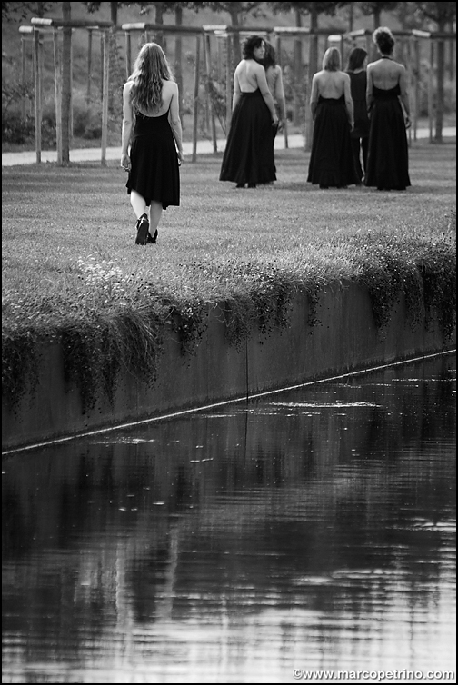 Molto bello questo scatto ed adeguato il bn.Il taglio che privilegia l'acqua e la direzione dei passi della prima ragazza suggerisce una visione fantastica come di una presenza misteriosa,venuta dall'acqua,che va ad aggiungersi al gruppo del quale una sola la nota.Immagine suggestiva e piacevole!  |
