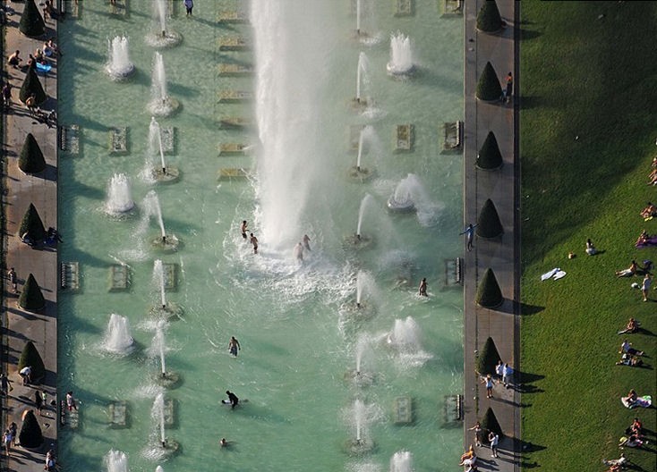 Nelle riprese di una superficie piana orizzontale effettuate dall'alto (nelle quali per esperienza visiva profonda "sentiamo" che le linee prospettiche "devono" in una qualche misura convergere in un punto più o meno remoto) la correzione rigorosa fino all'ortogonalità porta ad una percezione innaturale, come di divergenza, quasi che in realtà stessimo osservando una forma trapezoidale. Il margine destro della fontana sembra quasi nell'allontanarsi tendere verso destra. Se nel caso di linee verticali (la cui convergenza verso il punto più distante nella visione quotidiana avvertiamo solo osservando attraverso una cornice posta sull'asse di visione) è utile considerare l'eventualità di una correzione, per quelle orizzontali la faccenda è più delicata.