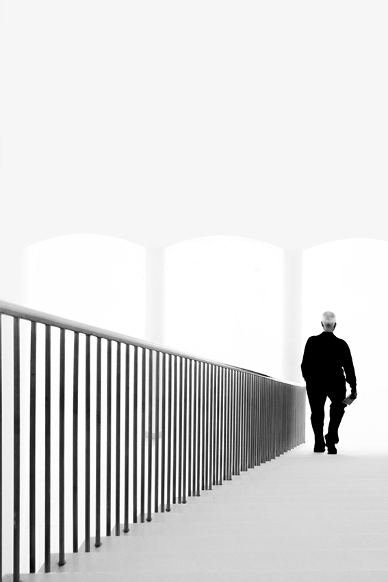 | Oggi vedo tante belle foto e questa è una di quelle...essenziale, ottima la messafuoco, L'immagine dell'uomo che scende le scale dirigendosi verso il nulla, mi piace molto... Carlo |