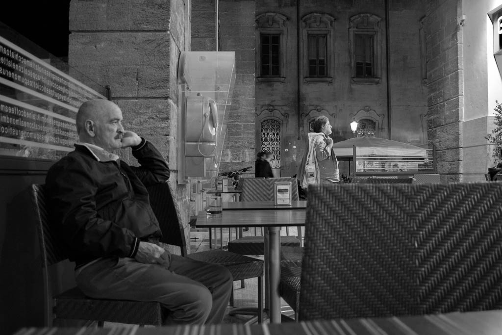 Lo scatto mi è sembrato interessante perché ci sono due uomini che entrambi aspettano qualcuno che è all'interno del bar. Soprattutto il primo da sinistra è interessante perché si vede che è molto pensieroso. |