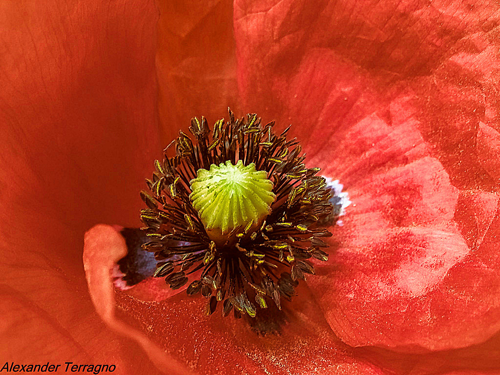 Ciao Red, l'effetto che scaturisce osservando la foto potrebbe essere un'applicazione in post di qualche texture? oppure come ipotizzato da Pierluigi una MDC leggermente marcata? Piacevole il taglio e la composizione, attenzione alle luci, in questo caso nel centro del papavero si sono mangiate il dettaglio..., gradevole scatto.