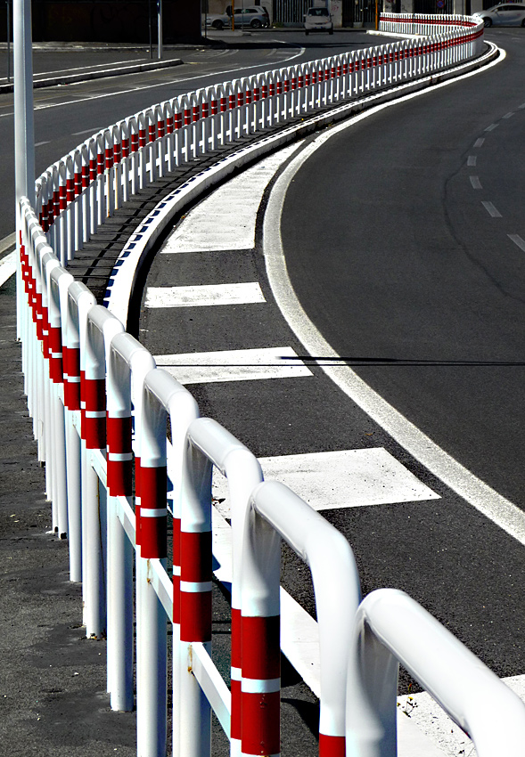 Hai indovinato dove ho scattato… ero, ovviamente, andata per la bella struttura “alle spalle” e attraversando la strada mi è piaciuto questo andamento sinuoso, dai colori e dalle ombre forti…