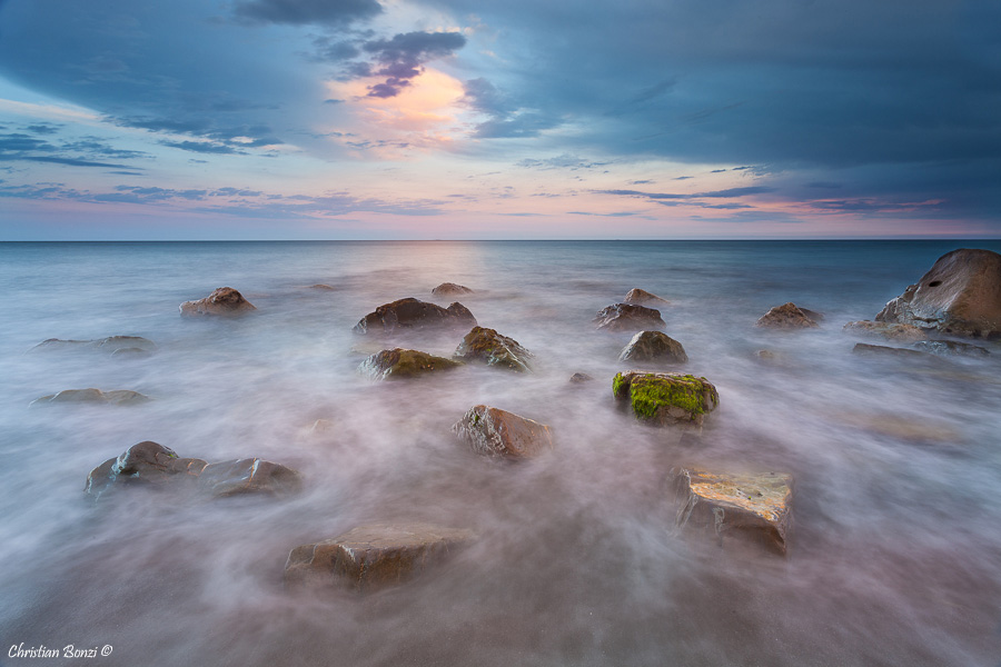 Concordo con Sisto... Quando ne ho la possibilità, faccio anch'io scatti come questo... Anche se, ai più, appaiono inflazionati. La foto mi piace. Forse non avrei incluso lo scoglio sulla destra e avrei isolato pochi sassi, per dare un contenuto minimal alla foto.... Giusto per la discussione..  _________________ Fiorenzo Carozzi
