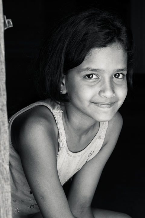 Dentro di me ero sicuro cha lo stipite fosse un elemento di distrazione, ma ha prevalso l'intenzione di lasciare quel minimo di contestualizzazione, per non fare a apparire lo scatto simile ad un ritratto in studio, visto lo sfondo praticamente nero. Ma poi sei arrivato tu a mettermi di fronte all'evidenza.