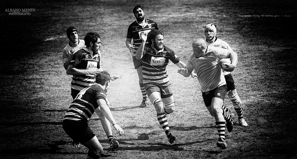 La scena riporta una classica azione di gioco, ben convertita in bianco e nero ma enormemente appesantita da una importante vignettatura