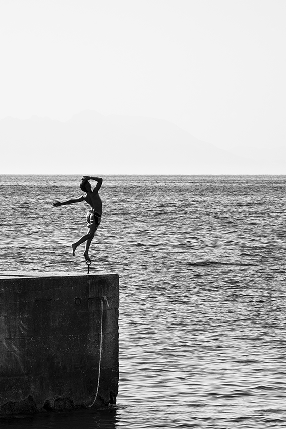 Statuaria la posa di questo ragazzino che scruta il mare nell'atto di tuffarsi,immagine molto interessante!