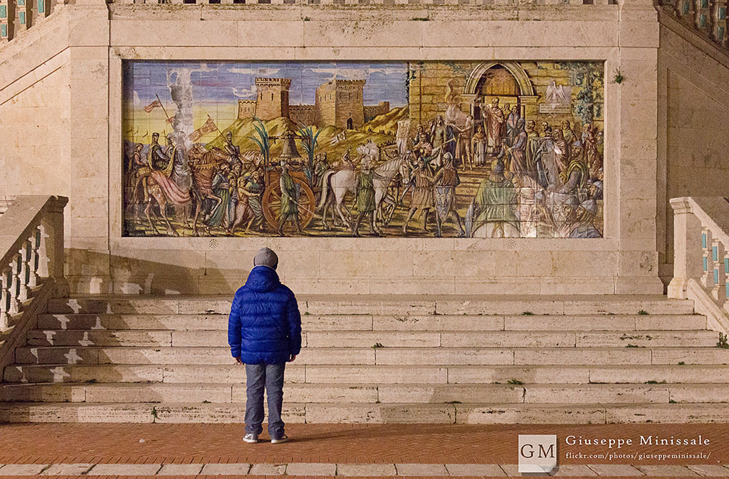 Hai utilizzato questa bella maiolica in cima alla Scala di S. Maria del Monte a Caltagirone ma hai aggiunto poco riprendendo di spalle il bambino.