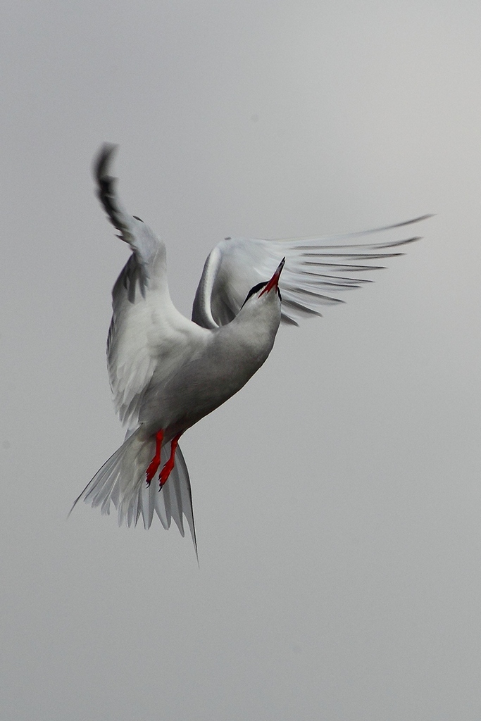 Bellissimo scatto, dal bianco e nero escono quelle zampette ed il becco color corallo.