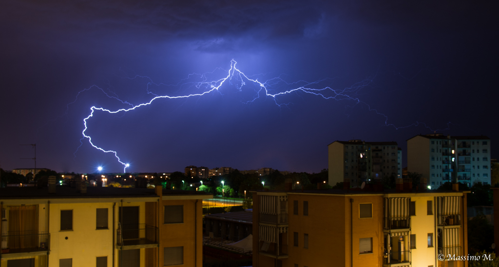 | Luigi T. ha scritto: | | Ottimo momento colto. Non mi fa impazzire la luce sui palazzi in primo piano, magari potresti attenuarla o fare un crop. | Concordo con Luigi sull'invadenza dei palazzi in primo piano, per luminosità e colore. Con un po' di pazienza e di fortuna (e magari un taglio appropriato del risultato casualmente ottenuto) si può catturare un bel fulmine. Ma la nitidezza è appena passabile: evidentemente nonostante l'uso di un appoggio o un cavalletto un certo micromosso ha comunque condizionato la ripresa.