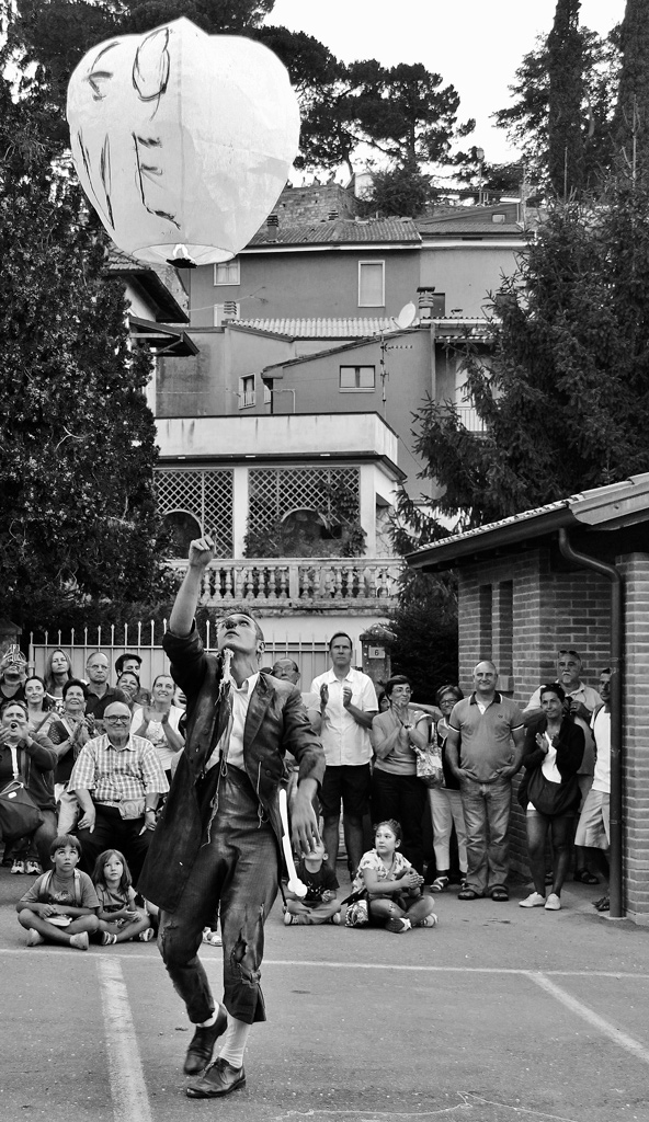 Una simpatica fotografia di uno spettacolo di strada.
