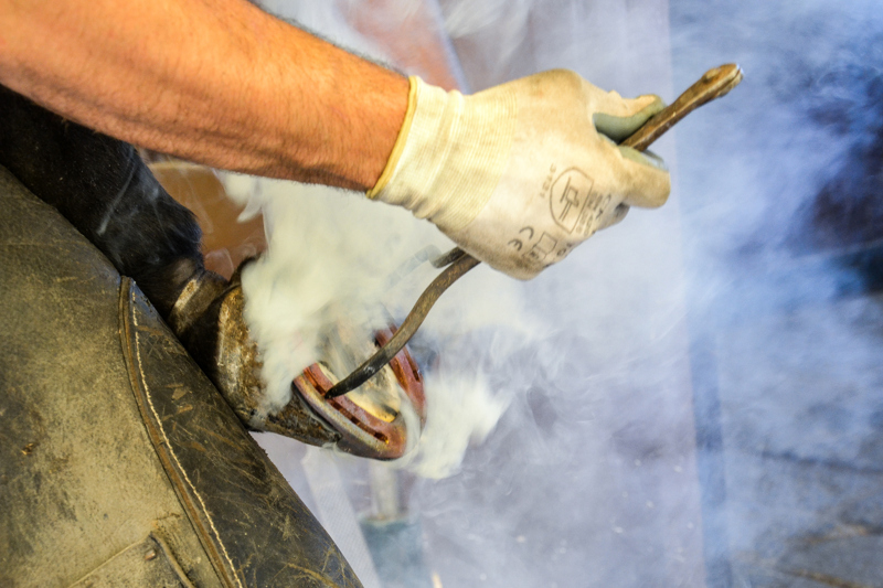 Interessante senz'altro. Da potare perché rimangano i momenti salienti e non ne venga fuori invece il "Manuale illustrato del maniscalco", con la pretesa di presentare attraverso la sequenza ogni singola fase dell'operazione di ferratura, talvolta perfino con due, tre o quattro scatti uniti in una sola cornice. Comincerei con l'eliminare tutte quelle in cui l'uomo "posa" sguardo in camera, dato che risultano innaturali e forzate, e soprattutto denunciano la presenza del fotografo che è ovvia ma in certi casi andrebbe dimenticata.