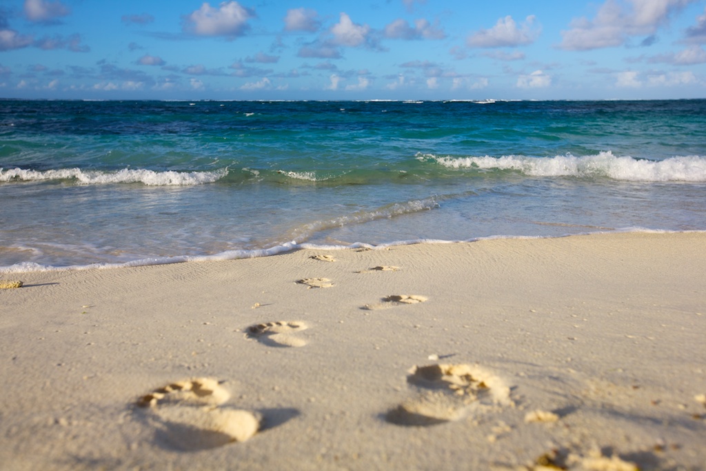 I colori sono quelli, incredibili, di Mauritius, senza intervento post se non un filo di contrasto. L'ho scattata in vari modi, ma ho scelto questa perché' mi sembra che spinga lo sguardo in avanti. Ho anche atteso l'ora in cui il sole al tramonto desse il maggior risalto alle orme sulla sabbia bianca.