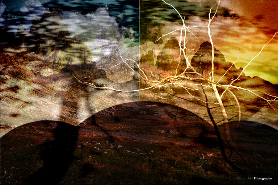 Qui hai sovrapposto una serie di "luoghi comuni fotografici" (nel senso, foto di stampo classico ), alla tua matrice. La tecnica imitata e' quella dell' esposizione multipla tanto cara ai lomografi.