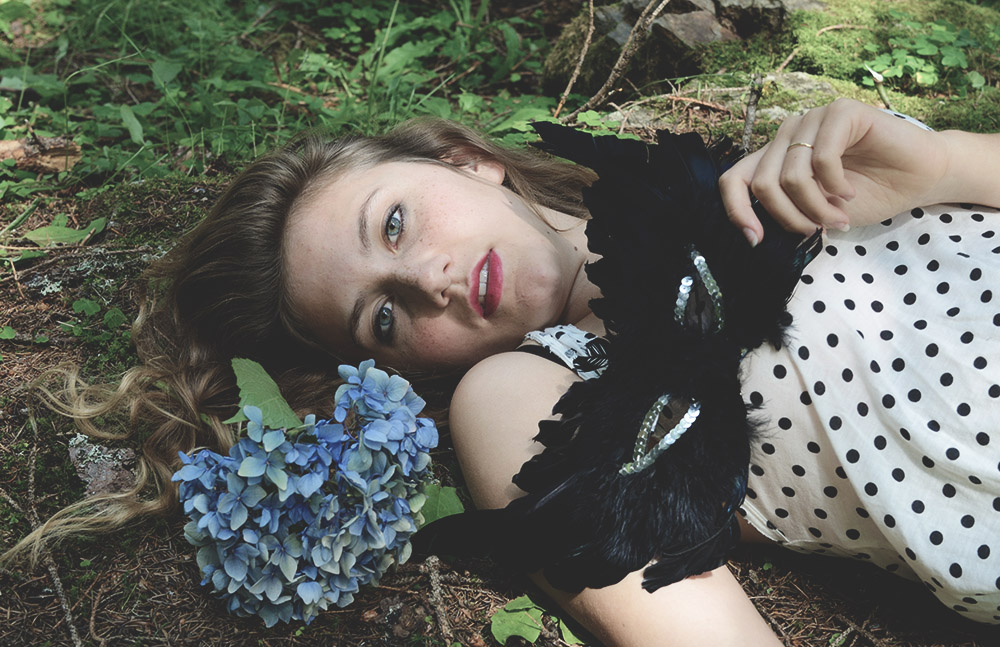 Uno dei migliori scatti tra quelli che ci hai proposto recentemente. Ottima la luce, delicata la resa dei toni. Mi piace molto il richiamo tra il colore dei fiori ed il colore degli occhi della modella. Personalmente avrei solo evitato la mano e la maschera nell'inquadratura. Smile
