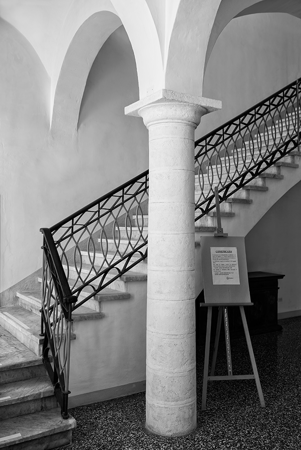 Bella estensione tonale del b/n. Se ce n'era un po' di ampiezza in più ci stava bene. La... colonna portante della foto secondo me stava bene saldamente piazzata al centro, a fare da fulcro visivo della scena. Il cavalletto con il comunicato non è il massimo ma non c'era modo di evitarlo (se non scansandolo).