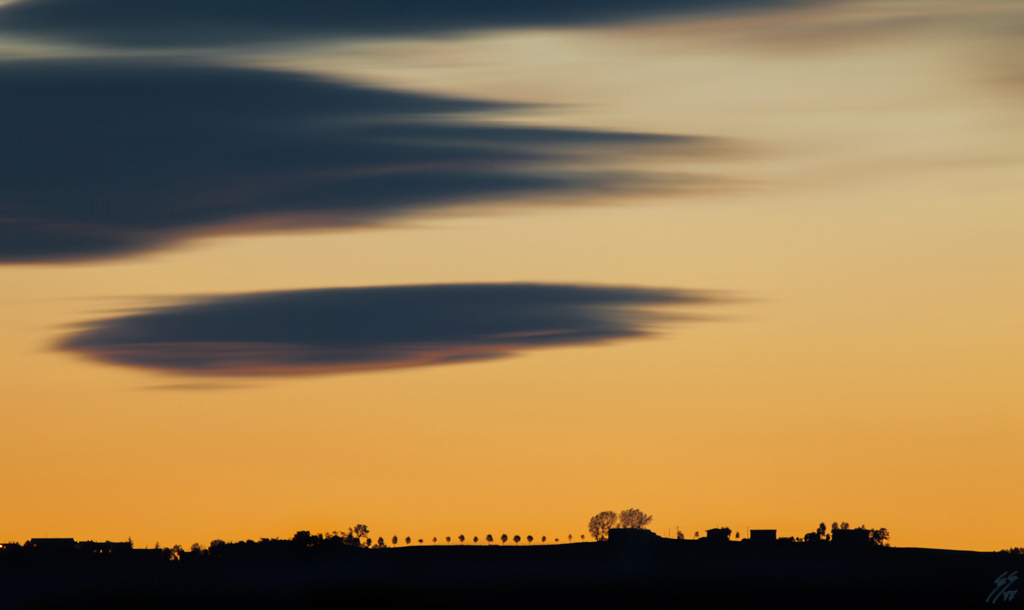 Pur essendo piacevolmente attratto dalla pennellata delle nuvole sulla bella tonalità del cielo, quello che non mi convince mai in queste foto in controluce è quasi sempre il piede. Ovviamente, il mio è un gusto soggettivo e non riferito esclusivamente alla tua fotografia. In fin dei conti, come hai fatto in questo caso, si tende a relegare il "terreno" ad una sottile strisciolina che diventa, quasi, "un elemento di disturbo".